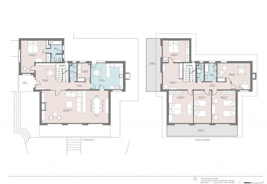 En la planta superior se distribuyen cinco habitaciones dobles, todas exteriores y con abundante luz natural, además de dos baños completos. Dos de las estancias destacan por su amplitud y por disponer de terraza privada, desde donde disfrutar de vistas abiertas al mar y a la montaña.